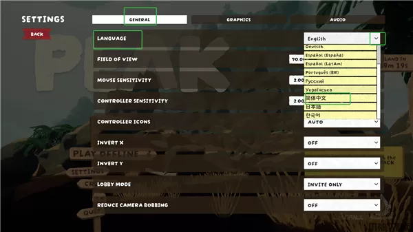 2、在【LANGUAGE】处下拉,将语言切换为简体中文即可。
