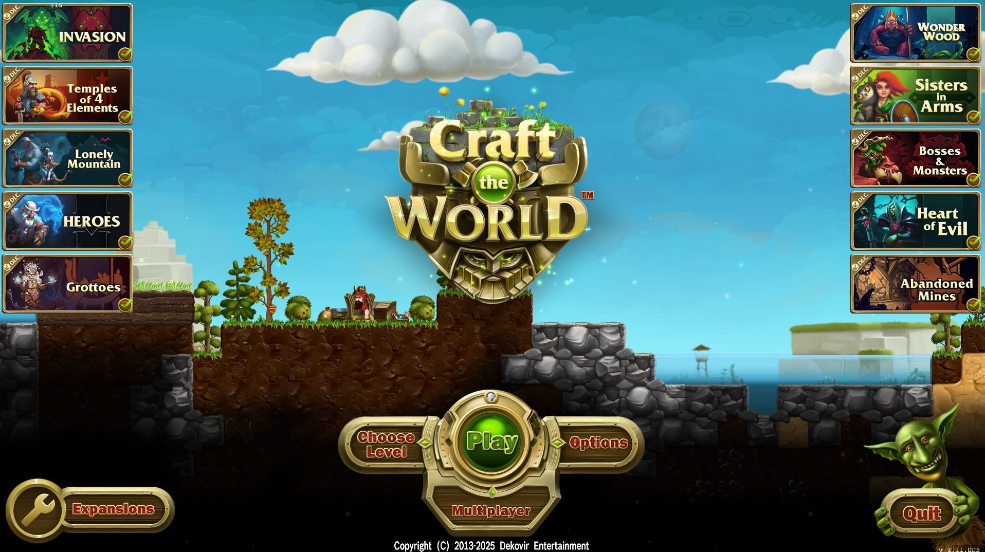 每个游戏关卡都有许多地球层可供探索,从天空到沸腾的地下熔岩。该层是随机生成的一个岛屿,受自然边界的限制:边缘的海洋、下方的熔岩和上方的天空。其他功能包括昼夜和不断变化的天气条件。世界在大小、湿度、温度、地形和动植物方面各不相同。被遗弃的大厅和装有宝藏的房间隐藏在岛屿深处的某个地方。