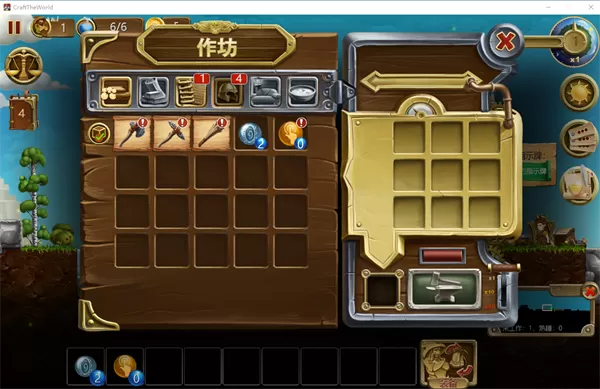 制作面板,用于制作游戏中物品,在沙盒模式中只要记得物品配方即可拖取物品制作。