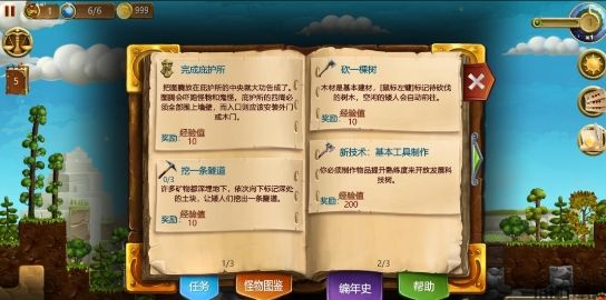 2、游戏任务、图鉴和帮助说明书。