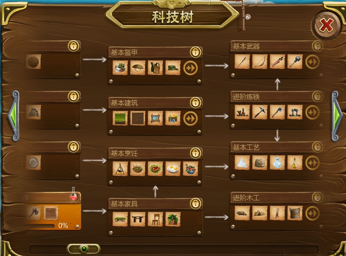 在关卡战役中,很多物品是通过科技树一层层解锁。