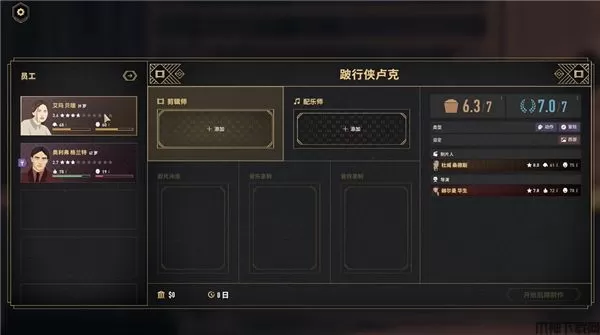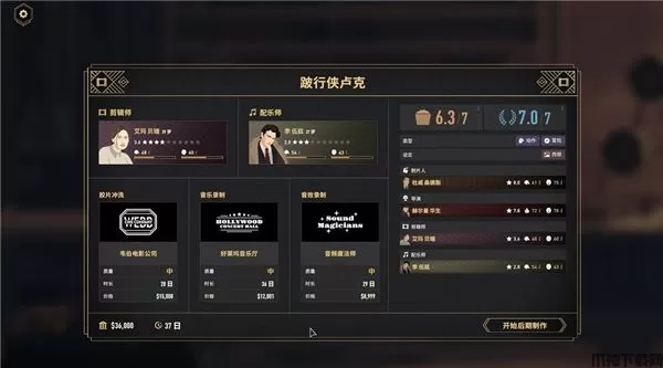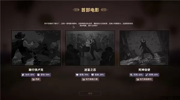 3、第一次玩家需要选择电影题材,因为是收来的制片厂要完成它们的电影,制作发行后玩家即可自己选择题材进行制作。