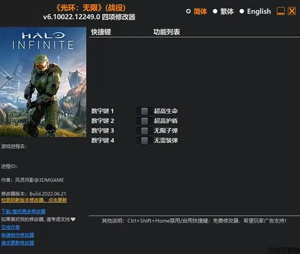 光环无限修改器是针对游戏《光环无限》制作而出的游戏辅助工具。光环无限修改器支持玩家修改超高生命,护盾,无限子弹,无需装弹四项强大功能,让你能够轻松通过关卡,有需要的朋友快到本站下载吧!