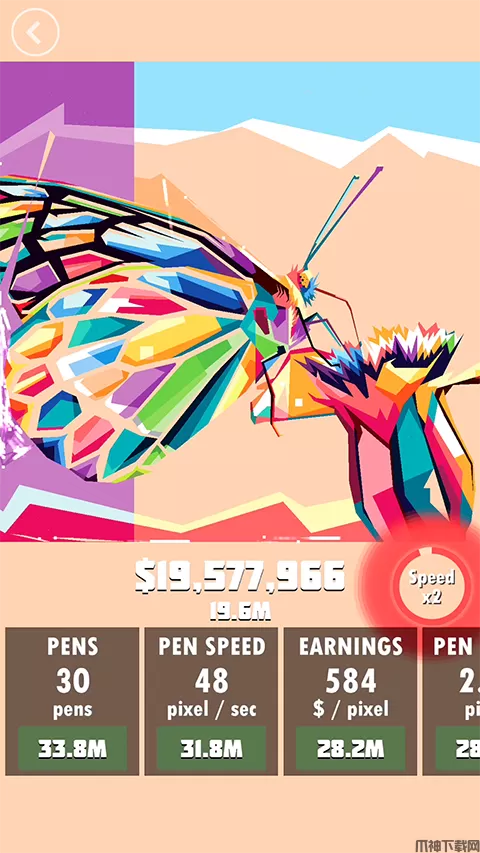 休闲画家(Idle Painter)是一款休闲益智类画画游戏。。游戏的界面上十分的清晰简洁,但是简洁的外表中的内容却是绚丽多彩的,在休闲画家游戏当中,玩家将化身为一位画家,凭借着一只手指头就可以创造出艺术作品,如果你想的游戏中的画画速度更快,那就可以施展你的一指禅神功哦,使用了一指禅你的绘画速度将会达到一种新的高度,而你最短绘画的时间是多少呢?