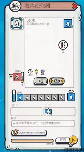1、首先把蒸馏器和低级工坊(其实就是砍柴的地方)做出来,还有那个晒木头的架子做出来。刚开始的时候食物跟水能用很长一段时间,水会比食物消耗的快,所以不用急着晒鱼。