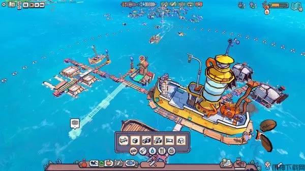 漂流品(Flotsam)是一款3D卡通渲染画风的海上末日生存模拟游戏。游戏的故事背景设定在被洪水淹没的地球,陆地被海水吞噬,只有少数漂流的同伴在恶劣的海洋上幸免遇难,你需要淡水、食物、能源,尽可能地在恶劣条件下生存,这种设定和著名电影《未来水世界》很像。游戏的玩法还是简单明了的,玩家开局会有一个基地和一些初始资源,周围随机分布着数量不等的垃圾堆(资源),通过给漂泊者下达指令可以搜集到塑料、木材等基础材料,之后再循序渐进地从蒸馏器、晾晒架、宿舍发展到船坞、木工棚、废品锻造屋、捕鱼棚等功能性更强的建筑,最终目的当然是能够让整个海上小镇自给自足地运转起来。