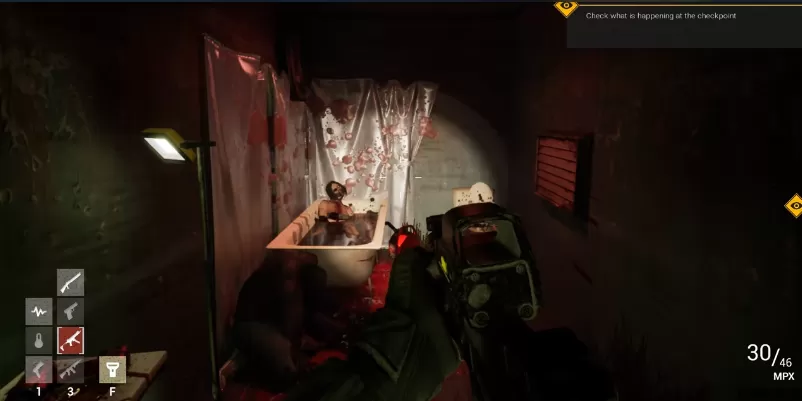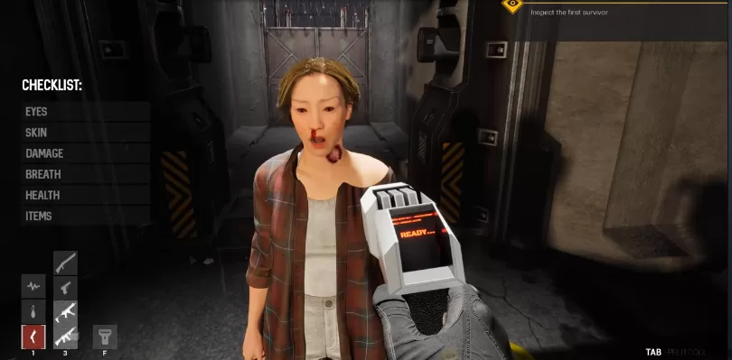 6、使用专用装备判断幸存者是否感染,或是否走私违禁品。人身搜查、扫描仪以及多种设备都会帮助你——一把趁手的霰弹枪也同样重要。