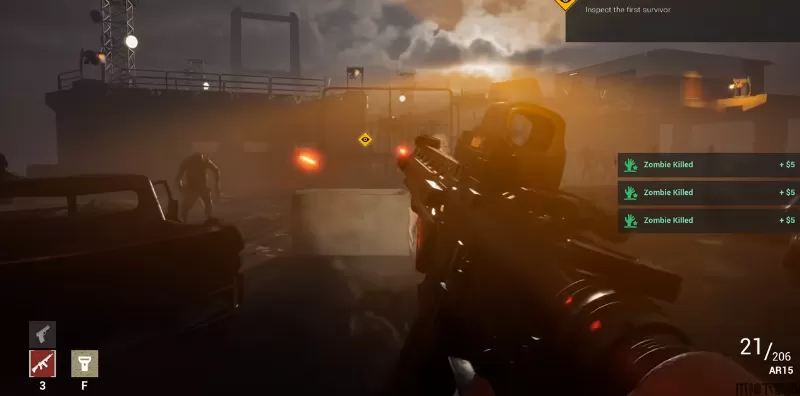 1、第一人称玩法,融合「检查模拟」与僵尸动作。