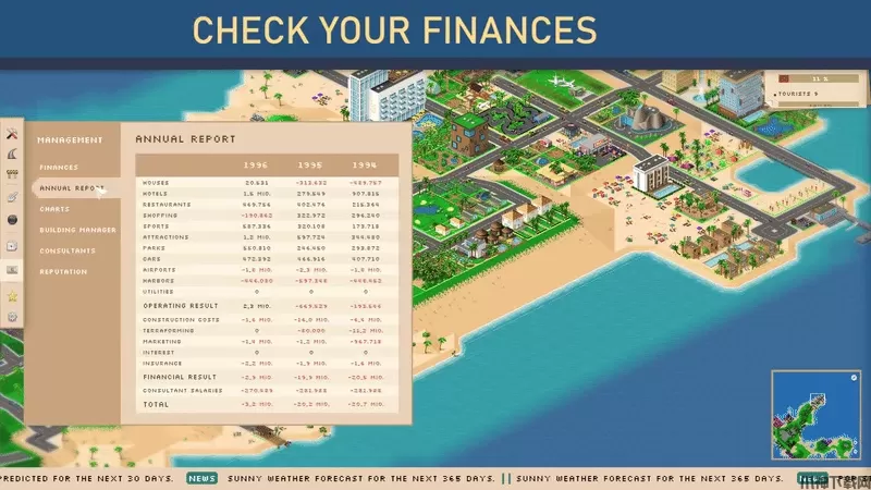 借钱或还债。出去做广告,或者买保险。检查你的楼房是否做得好,你可以提高租金。例如,聘请顾问来保护你免受破坏。还是你宁愿解锁更多的破坏?这完全取决于你。