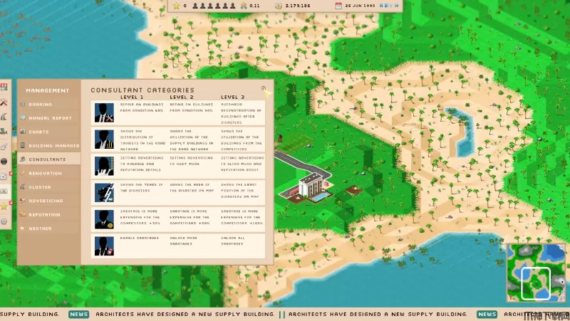 3、你还可以雇佣一些顾问来帮助你管理这座岛屿,他可以有效减少建筑物被破外。