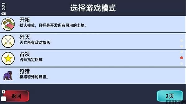 1、新手玩家可以先玩玩Al模式,看看人机是如何生存的,这对你以后建设是很有帮助的,然后再去逐步解锁其他的模式。 2、在你的部落中,你才是自己的神,你要去开垦荒地,攻打其他部落。神交给你了任务,却又给你降下了灾难。 而你需要的是在灾难中,在野兽横行,敌人入侵中,生存下来,并且击败打倒他们。 3、俗话说的好,屠龙者,终成恶龙。在最后一个模式中,你将饰演神的角色。降下灾难消灭所有的人类。