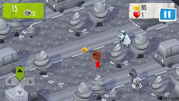 僵尸逃离是一款僵尸题材的动作休闲类手游,它的英文名是Watch out Zombies。该款游戏采用了3D的卡通风格设计,除了主角的色彩非常鲜艳之外,整个场景都采用了一种偏黑白风格的设计。无论是树、汽车等等看起来都毫无生气,不过画面的制作还是比较精致的。并且僵尸逃离游戏的操作采用触屏操控方式,游戏中玩家需要控制主角顺利的通过路口,而在马路上来来往往有车辆,不过在车与车之间一般都会留出一点空隙,玩家可以趁着这个机会迅速的通过马路。此外,游戏中还拥有七种不同类型的僵尸登场,玩家在过马路的时候可要千万小心哦!喜欢的朋友不妨下载这款僵尸逃离试试吧!