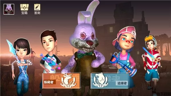 1、打开道具之夜躲猫猫游戏,选择要扮演的阵营,有躲避者和追捕者两个阵营。