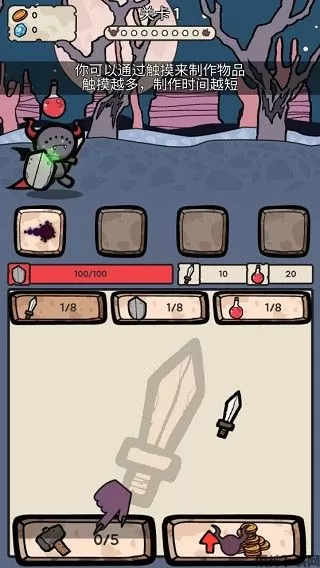 了解完背景后,正式进入游戏开始魔王的复仇。在这里玩家可以通过触摸来制作物品,触摸越多,制作时间越短