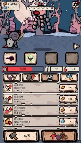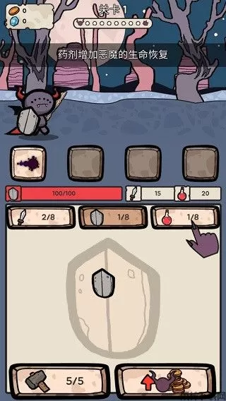 3、另外,在游戏中武器增加恶魔的攻击力,盾牌可以增加恶魔的最大生命值,药剂增加恶魔的生命恢复
