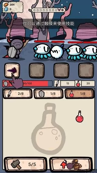 4、游戏过程中,敌人会自动出现,而你只需要放置挂机即可,期间你可以不断的合成并升级你的武器和装备,也可以通过触摸来释放技能
