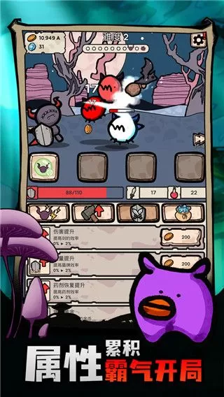 1、所选的恶魔通过不断的击败各种怪物们,就能让自己属性不断的提升,开启更多的技能