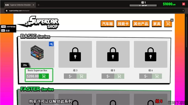 2、点击TAB键打开平板电脑,点进批发商购买Basic Supercar Box。