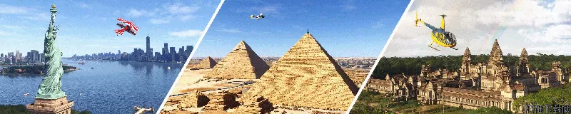 探索我们迄今为止细节更为逼真的地球再创作。增强的数字高程地图、超过 500 个 TIN(三角不规则网络)城市和超过 10 万平方公里的乡村地区摄影测量技术,这共同造就了逼真的数字孪生体验。我们精心打造了 150 多座机场、2,000 座滑翔机机场、10,000 个直升机停机坪、2,000 个兴趣点和 900 个钻井平台,同时程序化系统生成了全球 40,000 座机场、80,000 个直升机停机坪、15 亿座建筑和近 3 万亿棵树。