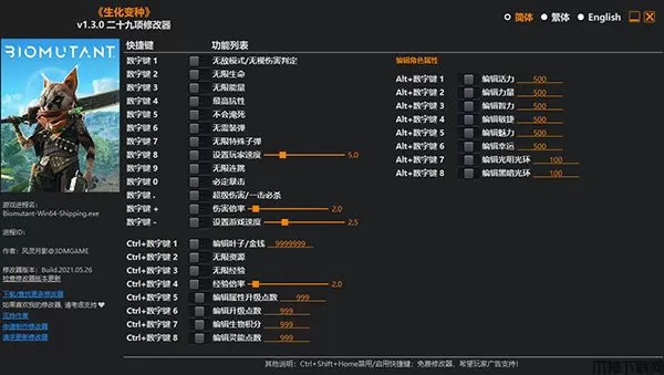 生化变种修改器是一款专为开放世界ARPG游戏《生化变种》所打造的多功能修改器,由风灵月影制作而成,通过它玩家可修改包括无敌模式/无视伤害判定、无限生命、无限能量等二十九项功能,可大幅提高游戏体验,且修改器简单易用,玩家只需启动游戏、开启修改器即可进行修改。