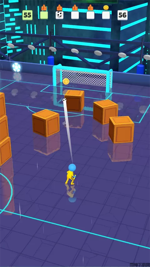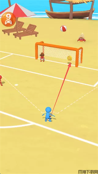 1、通过滑动屏幕来控制足球踢出的角度和力度,画出的线越长,力度越大。