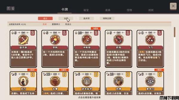 2、三大职业,六种分支,每个角色都拥有各自独特的牌库和秘宝!卡牌与秘宝的解锁进度会在收藏图鉴种展示,合计300+张卡牌、100+种秘宝,每一局游戏都有新的惊喜!
