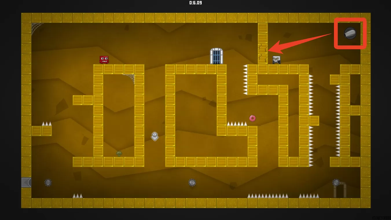 入口位于第24关。在进入第一个隐藏关卡之前,会有一个陷阱。踩到左下方带血的方块即可进入隐藏关卡。