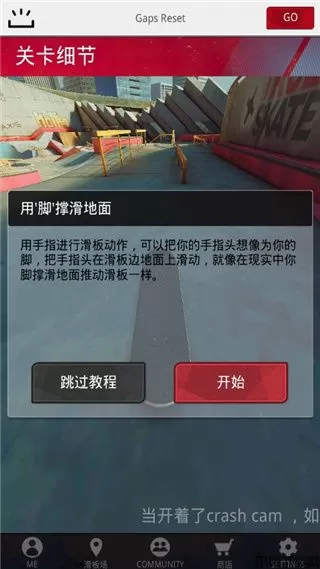 用手指进行滑板动作,可以把你的手指头想像为你的脚,把手指头在滑板边地面上滑动,就像在现实中你脚撑滑地面推动滑板一样。