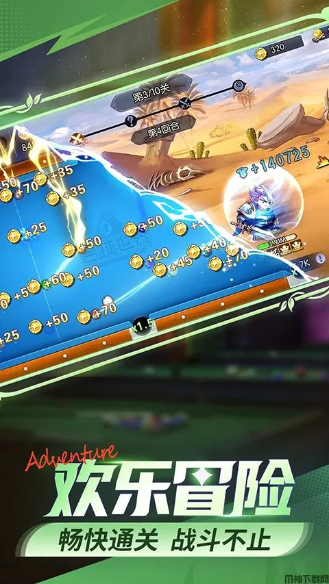 考验你的白球走位,让你体验绝佳的进球快感。