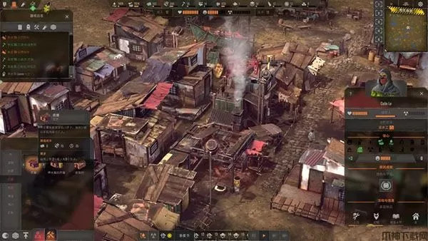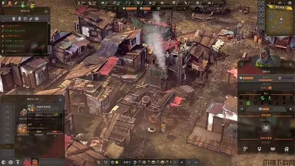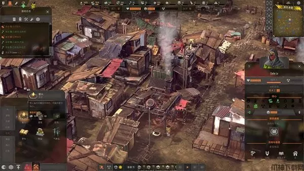 使用滚轮将画面缩放到最大的时候我们甚至还能看到穿着防护服的各个人物正在为了生存而心情劳作,房屋看起来并不算是美观 ,破木板构成的建筑有着一种难以言喻的感受,和背景相辅相成为玩家展现出了一个荒芜的末日世界。