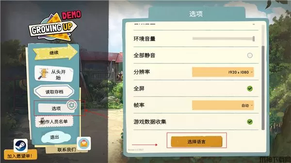 3、进入游戏后,点击选项,然后找到选择语言点击即可设置语言;