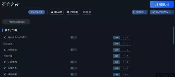 死亡之夜修改器是一款专为僵尸题材生存建造冒险游戏《死亡之夜》所打造的多功能修改器,它具有无限生命、没有伤害、无限体力、制作无材料需求、没有伤害、快速击杀等修改功能,可大幅度降低游戏难度,且修改器简单易用,玩家只需启动游戏、开启修改器即可进行修改。