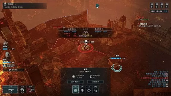 同样同右上技能,射击命中+行动力,击杀回弹药或者回满行动力的技能.一个回合内配合支援加个行动力可以打10下!高地命中+20%,一上屋顶基本可以团灭一波人.攻击力不高,但暴击高。