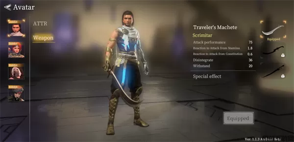 4、在进入游戏前可以设置当前角色的装备,还可以查看每种装备的属性,玩家可以根据需要进行选择。