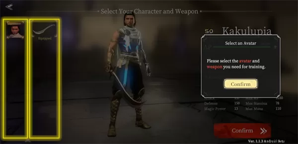 6、在进入游戏前需要选择一个角色和装备进行试炼。