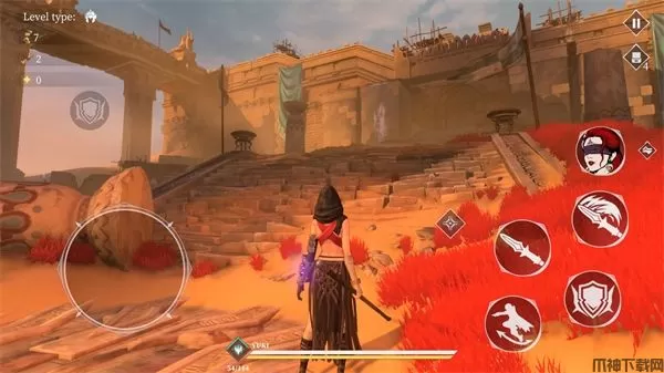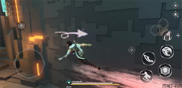 10、总共有两种不同的攻击方式,轻击和重击,还有防御和滑铲按钮,靠近墙壁还可以进行攀爬。