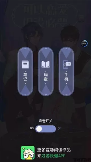 2、打开栏目条后可以看到“笔记”“篇章”“手机”和下面游戏声音的控制开关;
