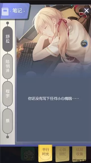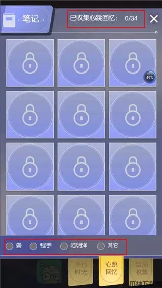 4、在“笔记”页面的下方还有黄色的便签,剩下的是“心跳回忆”和“结局收集”;