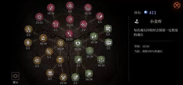 2、第二个优先加满的天赋是灵魂结晶。这个每级能提升boss20%的魂石掉落,加满后一共是提升100%。