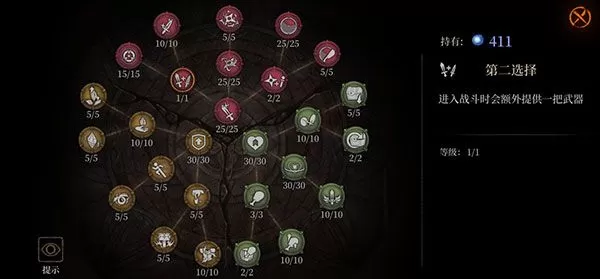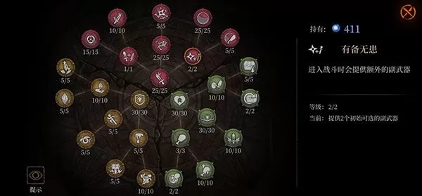 3、第二选择和有备无患。这两个天赋是开局会提供两把武器和两个副武器选择,选择性更强,可以随意搭配。
