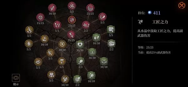 5、幸运恩赐和工匠之力。相信大家都知道,打到后期我们可以体验秒boss的快感,而这种秒杀大多来自副武器的强大,所以提升副武器强度是后期必不可少的!