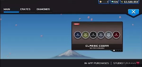 5、目前就更新了一个新的钻石涡轮,性能和黑金涡轮一样就是轻了点,而且貌似在以前版本买了no ads(没有广告)的玩家这个涡轮会变成红色,只不过现在不能买了,只能说是对氪金玩家的一种补偿了;