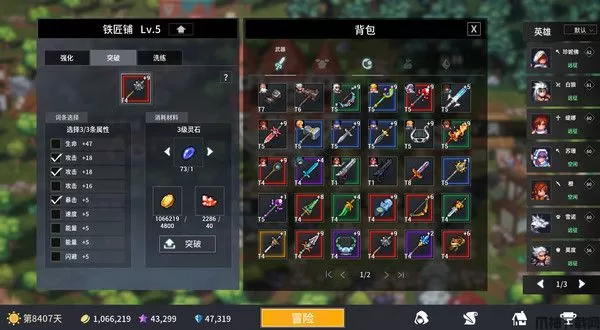 3、训练场——迅速提升英雄等级觉醒转生英雄的好场所。