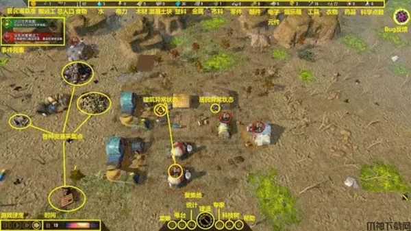 3、食物:显示当前储备的食物数量,是居民生活的必备资源。食物种类的多样性对居民非常重要。