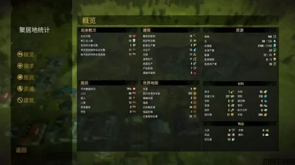 22、聚居地统计:查看聚居地的各项事宜概览。