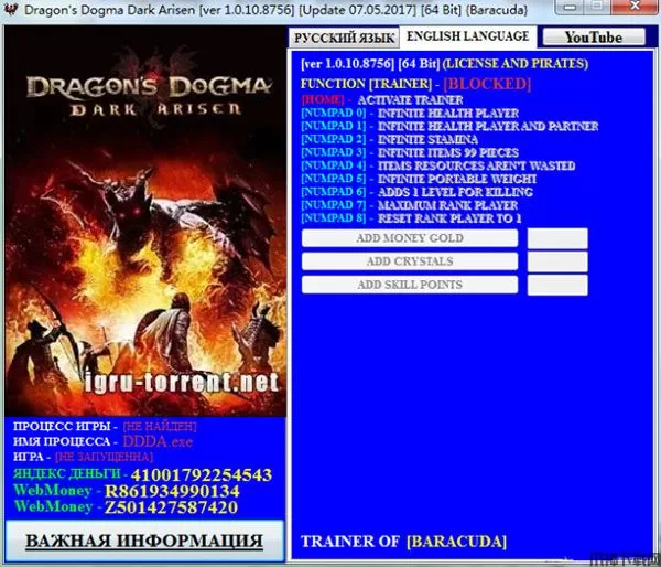 小编今天给大家带来的是龙之信条黑暗觉者修改器,里面包含无限生命/体力/无限金钱/RC、物品不减、负重清零、超级跳、无摔落伤害、一击必杀、立即升级、无限经验(满级)等12项功能,能够帮助玩家得到更便捷的游戏体验,喜欢龙之信条黑暗觉者游戏的玩家可以下载龙龙之信条黑暗觉者十二项修改器体验哦。