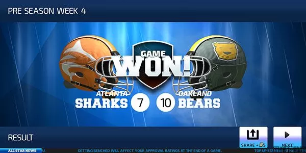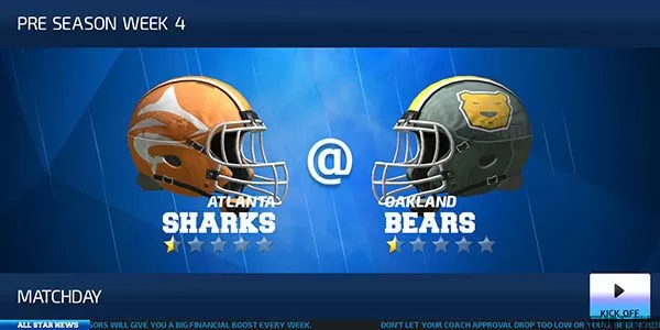 全明星四分卫(All Star QB)官方版是一款由国外游戏厂商Full Fat根据橄榄球这项运动所打造的体育经营类手游。从游戏名称中的全明星字样里我们就能大致了解一二,既然是全明星,那游戏中的镜头也必然不会只聚焦在某一个两个的橄榄球员身上,而是从更加广泛的角度来进行注视。而要做到这一点,只有一个身份最合理,那就是球队俱乐部的经理人。因此玩家们在全明星四分卫游戏中也正是扮演这样的一个的身份,然后通过不断地运营,比如招募优质橄榄球员、改善球员的生活设施、提升球队俱乐部的知名度等,直到建立独属于你的体育王朝。