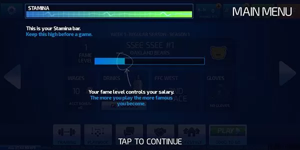 10、主界面左上角能量条代表士气,高涨的士气有利于获得比赛胜利。中间的能量条代表名誉等级,名誉等级越高,薪水也就越高!