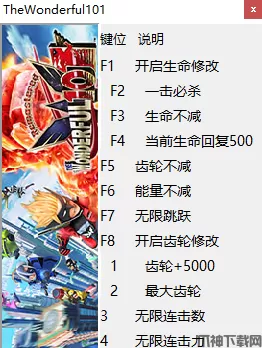 神奇101重制版修改器是一款专为动作游戏《神奇101重制版》所打造的多功能修改器,它具有生命修改、一击必杀、生命不减、齿轮不减、能量不减、无限跳跃、无限连击数、超级速度等十一项修改功能,可以减少游戏难度,给玩家带来更好的游戏体验。且修改器简单易用,玩家只需启动游戏、开启修改器即可进行修改!