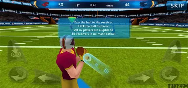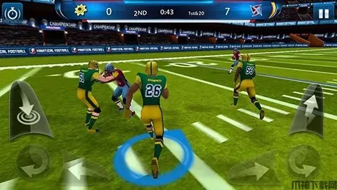 5、运用全新、直观的点击和划屏控制,通过跑、攻、传球和在档间激烈冲撞完成达阵得分。